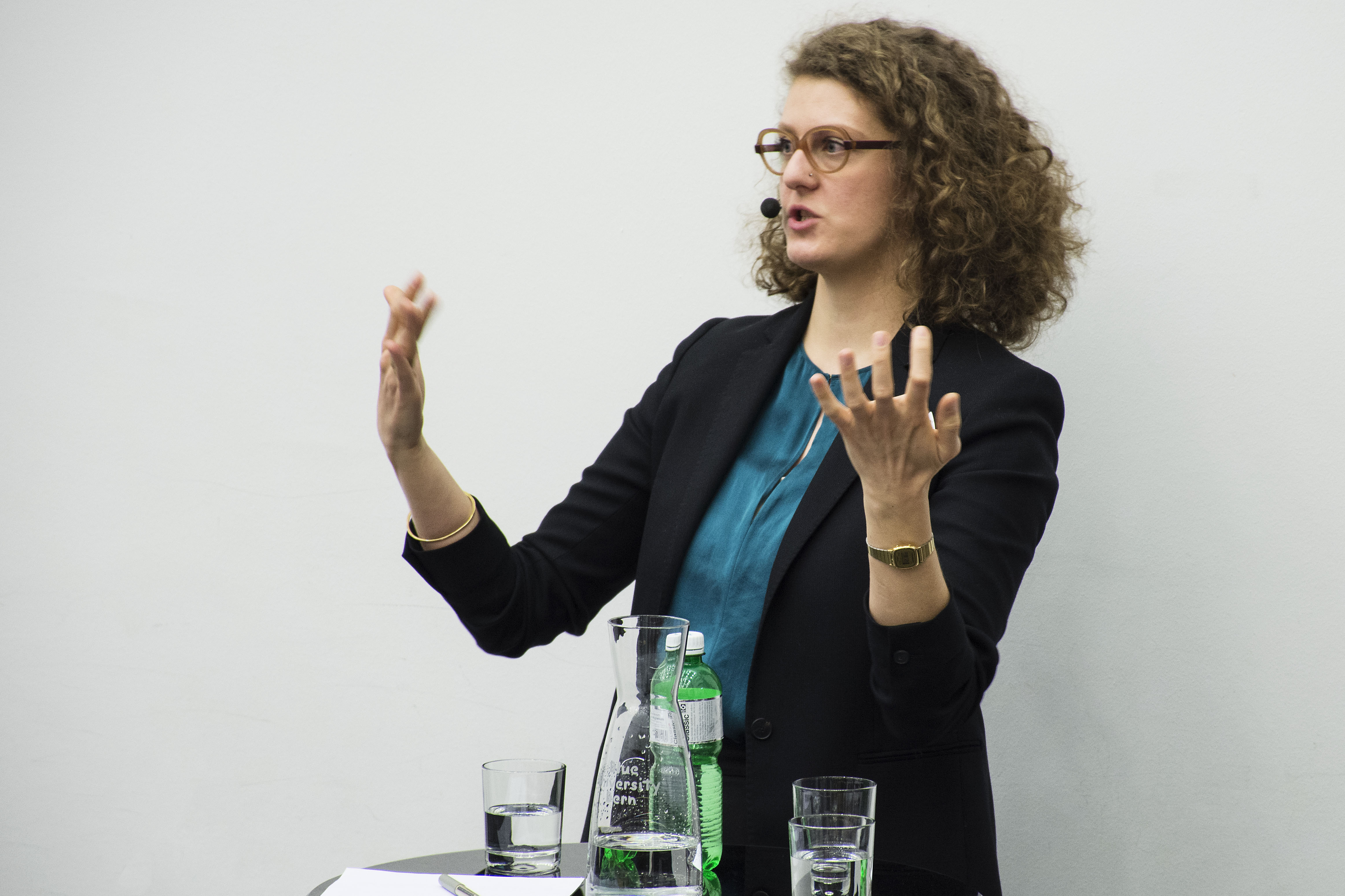 Genau mit diesem Auftauchen in unterschiedlichen realen und digitalen Kontexten spielt die Künstlerin Katja Novitzkova. Sie findet die Bildvorlagen für ihre Installationen im Internet, d.h. sie macht keine eigenen Fotografien mehr. Die Vorlagen arrangiert sie zu grossformatigen Rauminstallationen und speist die Bilder davon wieder zurück ins Internet, wo sie auf der Homepage der Künstlerin, in sozialen Netzwerken und Suchmaschinen wiederum auftauchen. «Hier wechseln Kunstwerke also permanent ihre Aggregatszustände. Sie schlüpfen mal in analoge, mal in digitale Gewänder, präsentieren sich als digitale Fotografie, dann wieder als Skulptur, nur um später als Screenshot in einer PowerPoint-Präsentation zu landen», verwies Schweizer mit einem Augenzwinkern auf die Schlussfolie ihrer Präsentation. Hier stehe die Frage nach dem Original tatsächlich auf dem Prüfstand, denn die Präsentation in einer Ausstellung werde in einem solchen Fall nicht als finalen Zeitpunkt der künstlerischen Produktion betrachtet – vielmehr träten durch das Publikum neue Bedeutungsschichten zum Kunstwerk hinzu: «Das Auftauchen in neuen Rezeptionskontexten ist stets ein weiterer relevanter Bedeutungszuwachs, der zum Kunstwerk beiträgt.» So seien Kunstwerke Ergebnis von Kommunikationsprozessen, die ihre Reichweite vervielfachen, indem ihre Rezeption immer weiterläuft. «So ist das Original nicht zu einem Ende gekommen, hat sich aber zumindest multipliziert», schloss Schweizer.